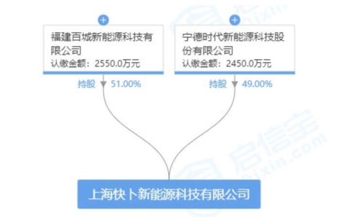 On March 6, Shanghai Kuaibu New Energy Technology Co., Ltd. was established. Fujian Baicheng New Energy Technology Co., Ltd. holds 51% of shares, and Contemporary Amperex Technology (CATL), China's largest automotive lithium-ion battery maker, holds the remaining 49% of shares.