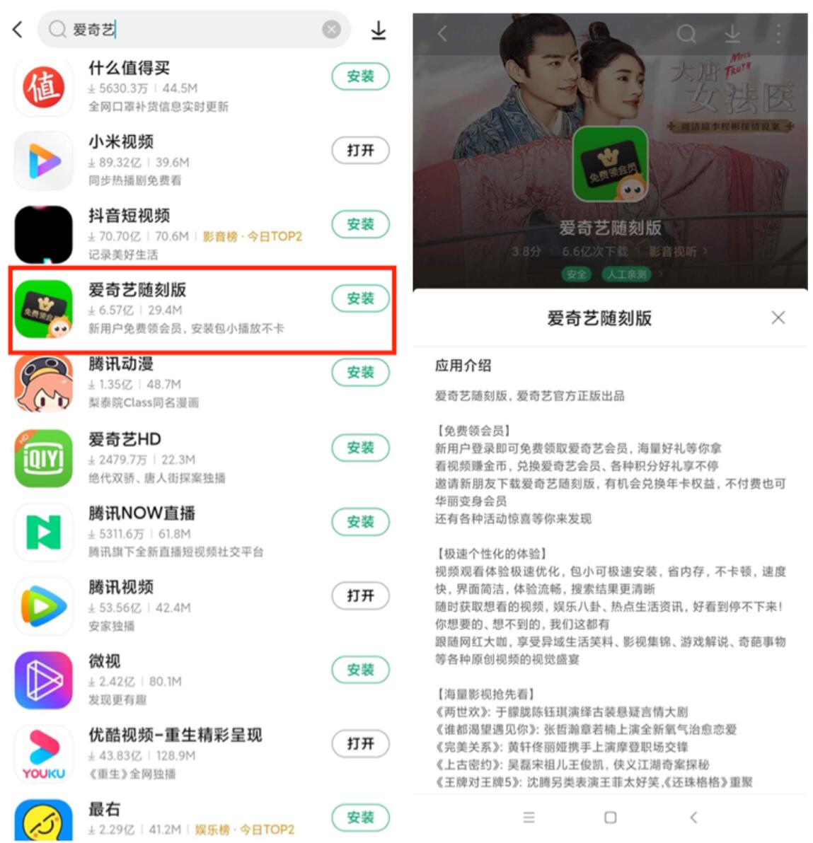 Recently, an app called "iQIYI Instant Version" (爱奇艺随刻版) has quietly launched by the Chinese streaming-video platform in Xiaomi, Samsung and other app stores.