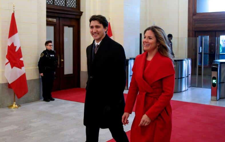 File photo: Canadian Prime Minister Trudeau and his wife Sophie, who tested positive for new coronavirus