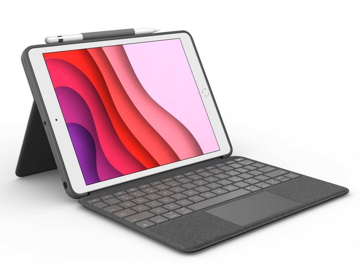 This will make the iPad look a bit like Microsoft's Surface, just a tablet with a stand on the back for adjusting the viewing angle. Logitech's Combo Touch keyboard case is powered by the iPad's Smart Connector, and it also includes a ring for a stylus.