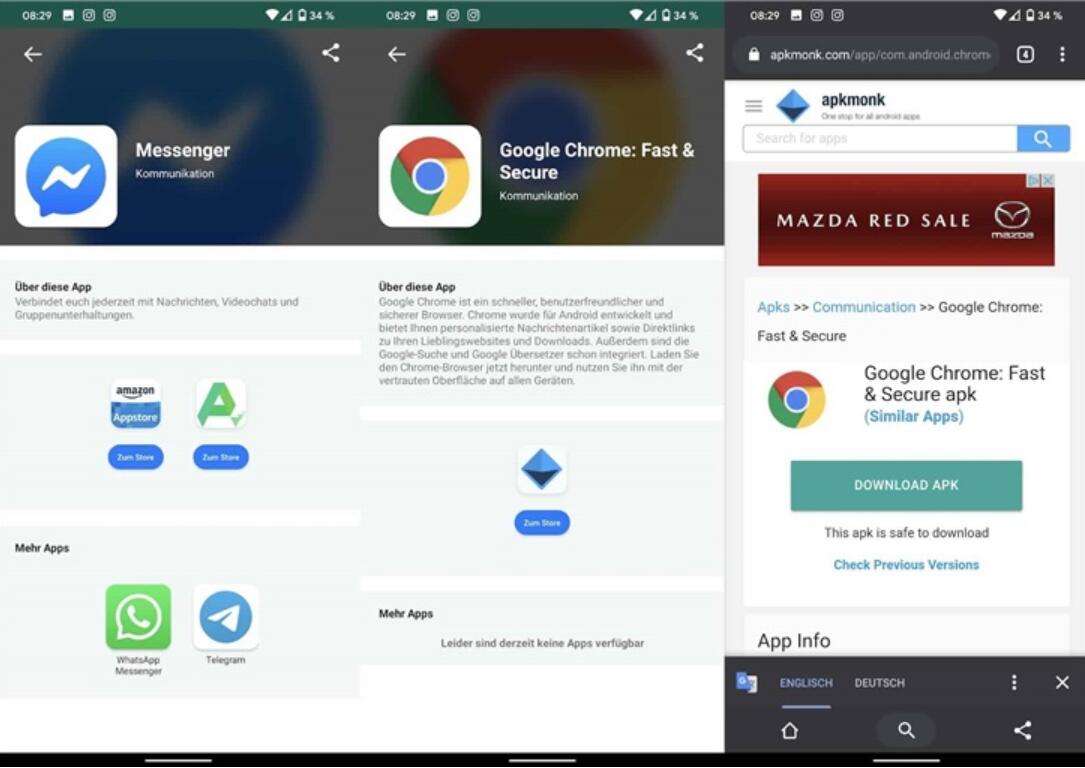 Some of these apps are downloaded from other AppStores, such as Amazon App Store, APK, apkmonk App Store, users will be directed to the corresponding website to download the application directly from there, and some applications (such as Facebook and WhatsApp) It is provided directly through the official website.