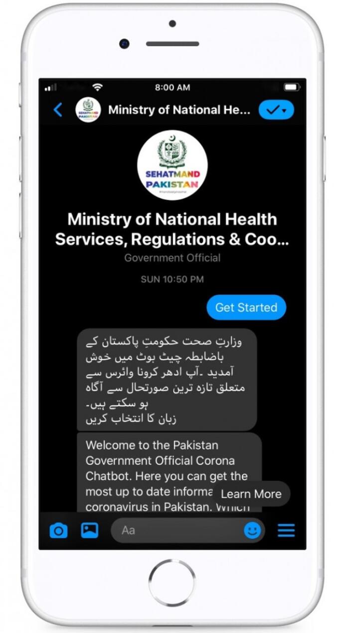 Organizations such as UNICEF and Pakistan's National Health Service, Management and Coordination Agency (NHSRC) are already using Messenger to ensure that people have the latest information on the new coronavirus.