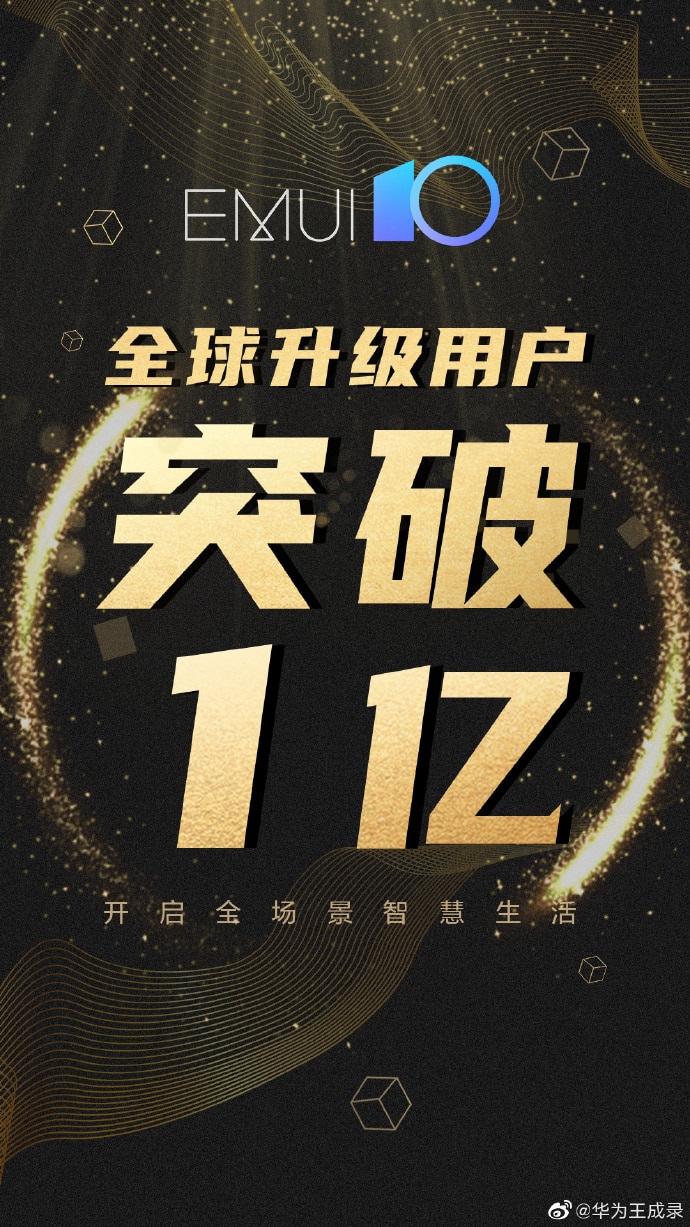 Huawei Consumer BG Software Department President Wang Chenglu announced on Weibo today that the number of EMUI10 global users exceeded 100 million.