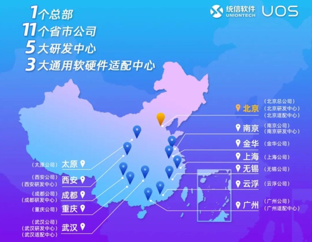 Union Tech, the developer of the Unity Operating System (UOS), announced today that its organizational structure has been finalized. Union Tech will build a headquarters, 11 provincial and municipal companies, 5 R & D centers, and 3 general software and hardware adaptation centers.