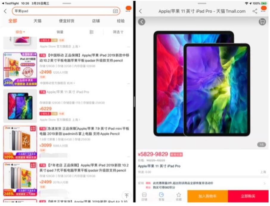 Taobao has ushered in the iPad OS version 9.5.9 beta update, which adapts to the iPad's horizontal screen interface with the "split screen mode".