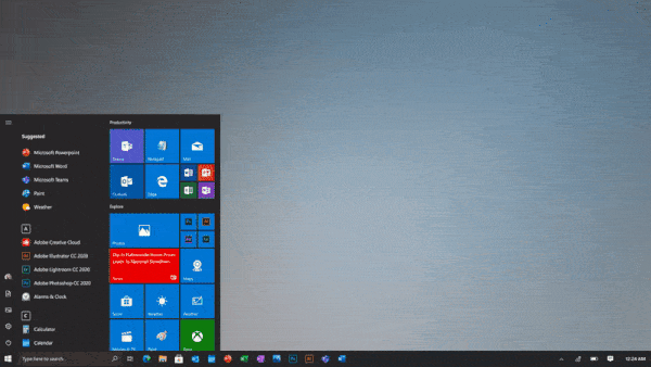 The new start menu is very different from the start menu used in the current version of Windows 10. The notable changes include a wider list of applications and changes to the tiles, such as omitting the title that appears on medium-sized squares.