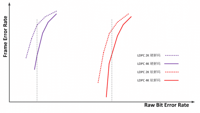 In other words, under the same error correction failure probability (UFER) requirements, 4K LDPC can tolerate a higher raw bit error rate (RBER) of flash memory particles, which can greatly extend the service life of flash memory.