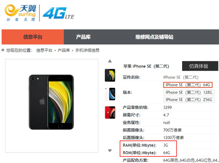 Apple released the second generation of iPhone SE yesterday. Now, the device has appeared in China Telecom's Tianyi product library.
