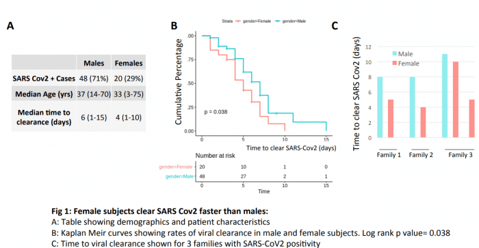 Researchers have found that women can remove viruses from their bodies on average two days faster than men. The study included two families with male and female patients. In both cases, women cleared the infection faster than men.
