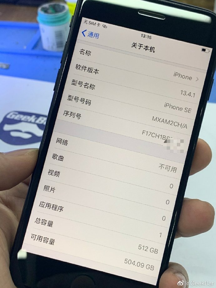 Weibo user @GeekBar today released the results of the new iPhone SE expansion, 64GB smoothly turned into 512GB, and the test function can be used normally, no abnormalities seen.