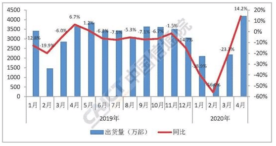 In April 2020, 40.782 million smartphones were shipped, up 17.2% year-on-year and accounting for 97.7% of mobile phone shipments in the same period.