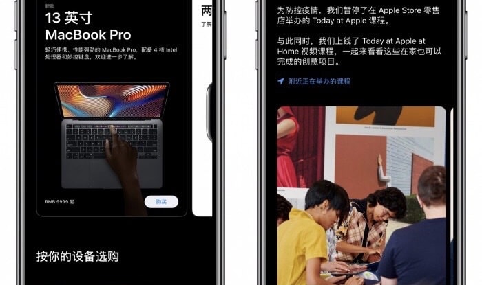 When you turn on the dark mode switch in the Control Center, the Apple Store's interface follows the switch to dark mode with a black background.