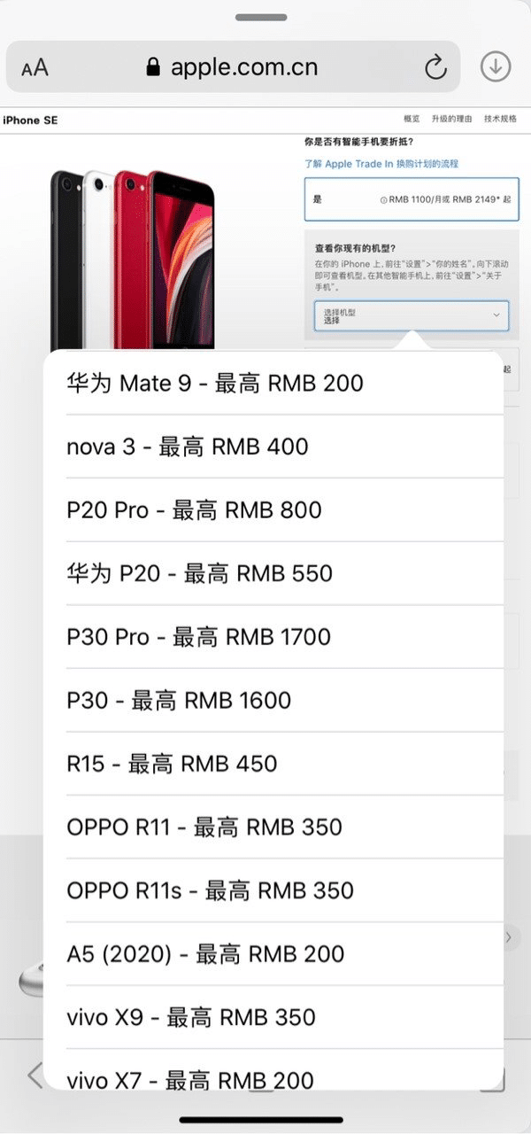 Previously, Huawei P30/P30 Pro up to 200 yuan, OPPO R11/R11s up to 350 yuan. But now Apple's official website in the press release has been revised and adjusted, now Huawei P30 up to 1600 yuan, Huawei P30 Pro up to 1700 yuan.