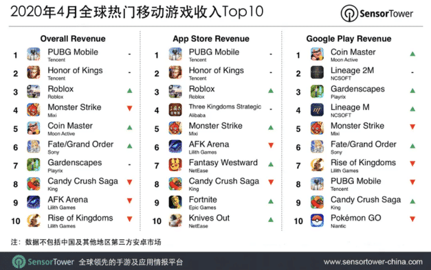 Roblox has seen the biggest rise in rankings, jumping to #3 on the list with $96 million in revenue, up 37.4% year-over-year.
