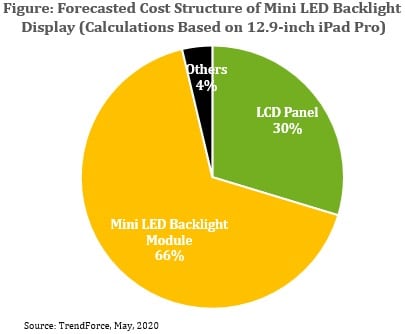 TrendForce said the cost of Mini LED backlit displays is expected to be more than $100 (about $710), of which the Mini LED backlight module cost more than 60%.