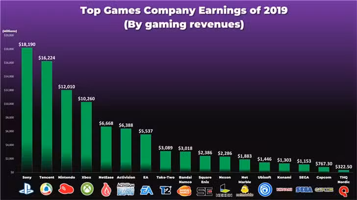 Many gaming companies have already announced their respective earnings figures for 2019 externally, and today, a fellow netizen on the ResetEra forum rounded up the data of several game majors that have already announced their earnings so far.
