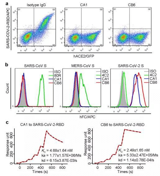 Cellular experiments showed that both monoclonal antibodies prevented the novel coronavirus RBD from binding to the human ACE2 receptor on the cell surface. In subsequent other cellular experiments, both antibodies also showed good neutralizing activity, while CB6 showed a stronger neutralizing ability.