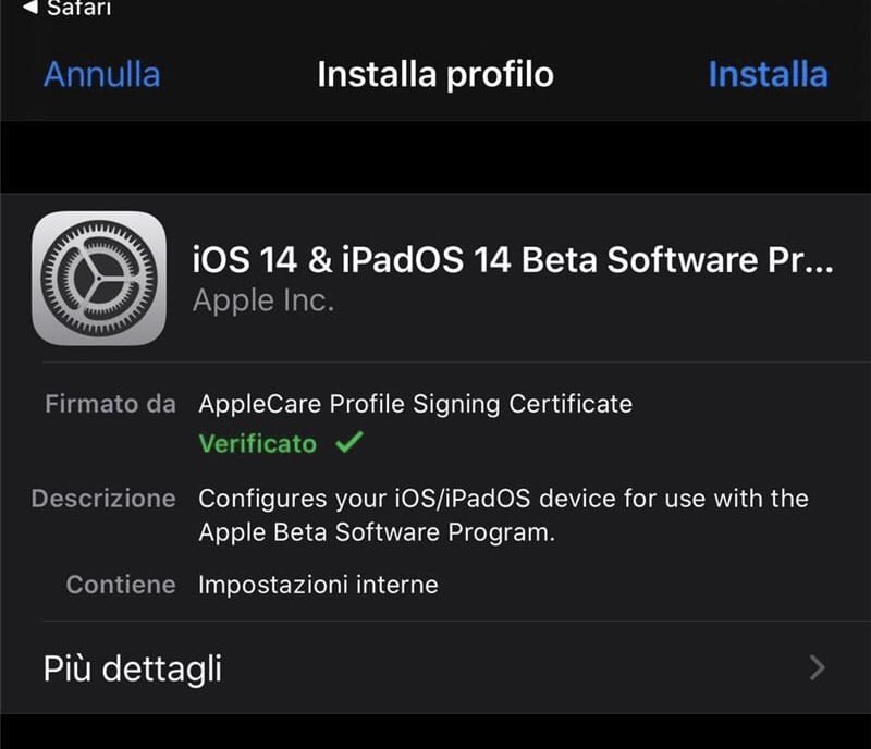 Some users had previously installed the configuration profile for iOS 14, but Apple quickly cleared the contents of the configuration file.