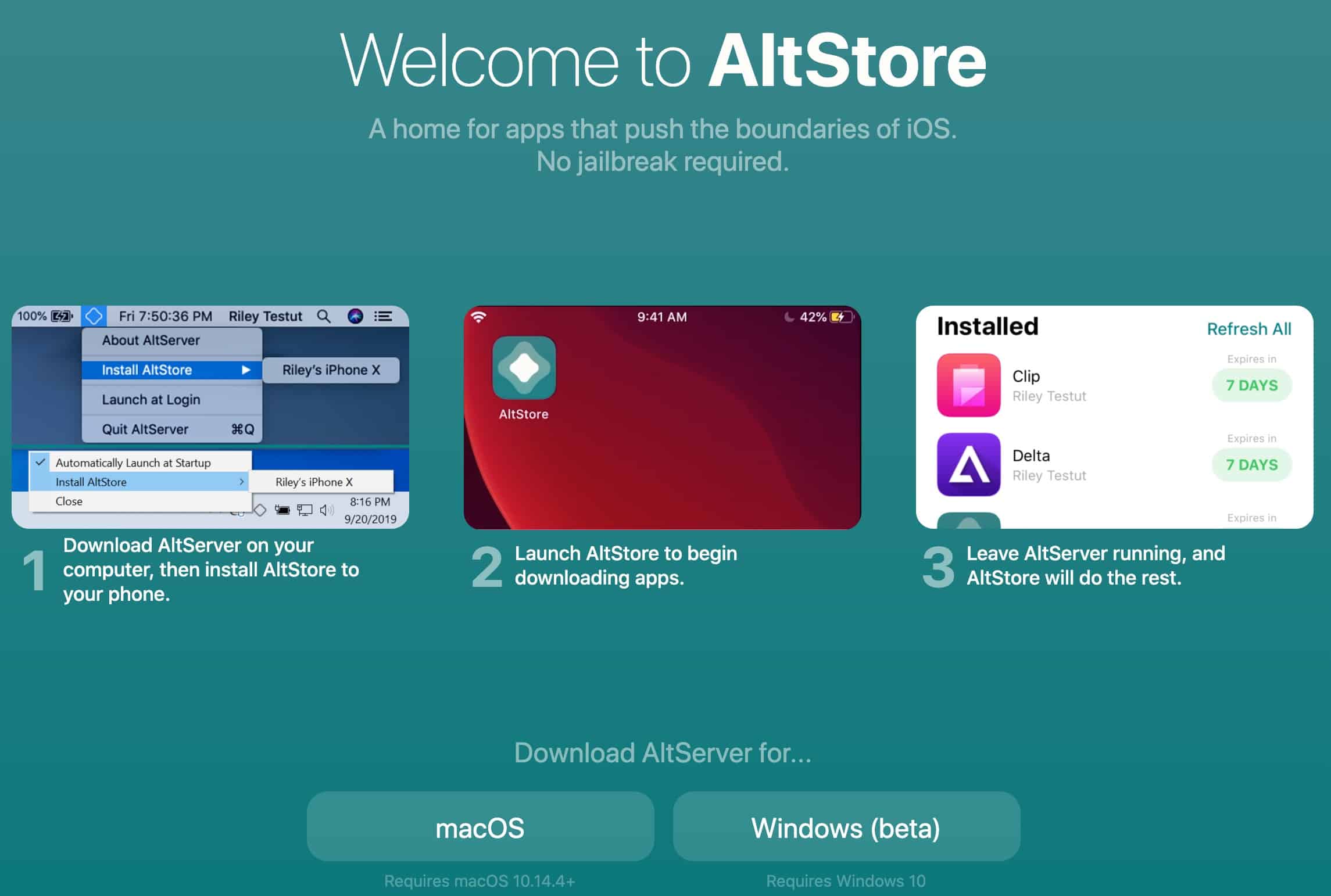Step 1: On a Mac computer, download AltStore for macOS from altstore.io, and move it to “Applications".