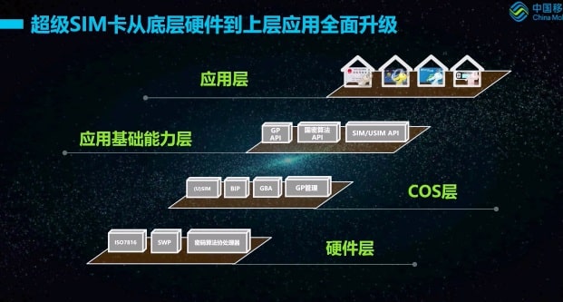 The technical architecture of the super SIM card includes four parts: hardware layer, COS layer, application basic capability layer and application layer, and the super SIM card introduces new technical features in each layer.