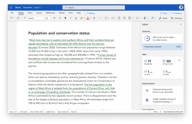Microsoft will soon release an online similarity checker for Word editors to help users improve their writing style.