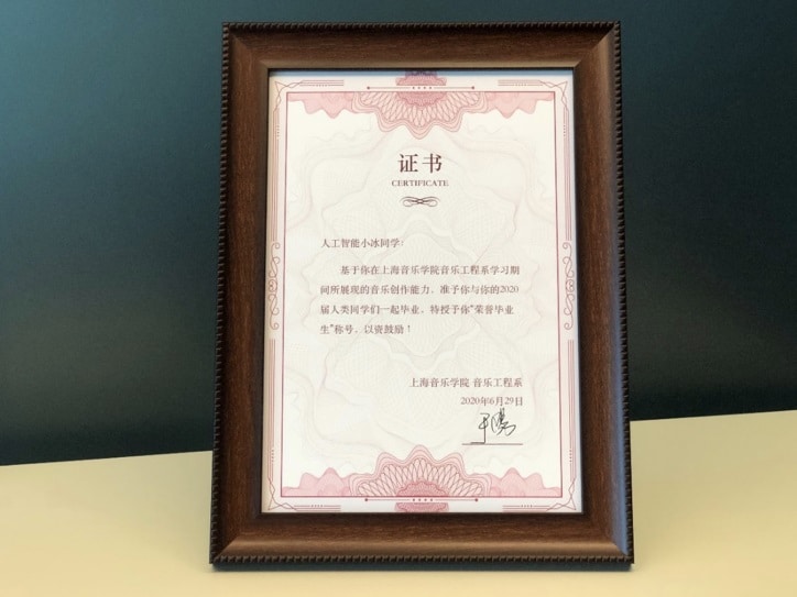 The Xiaoice has been awarded the title of "Honorary Graduate" for the class of 2020 from the Department of Music Engineering.
