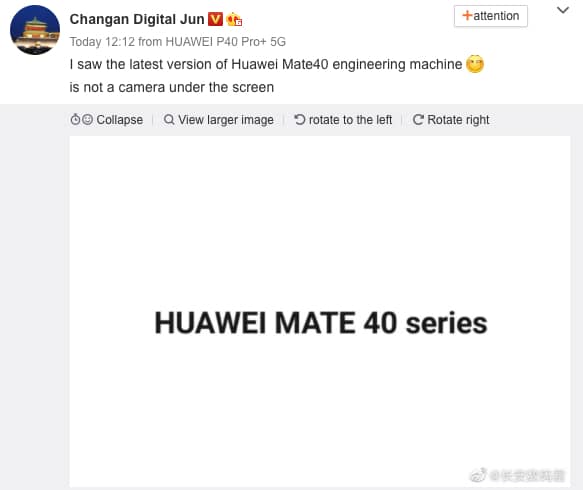 Digital blogger @长安数码君 claimed on Weibo that the Huawei Mate 40 engineering phone does not come with an under-screen camera.