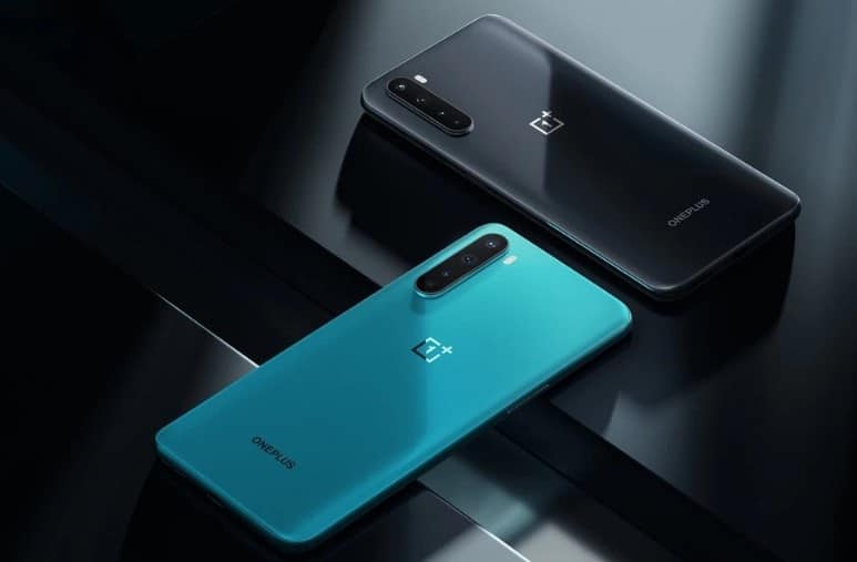 The OnePlus Nord phone has a glass front and back, a flat display on the front, and features two selfie cameras.