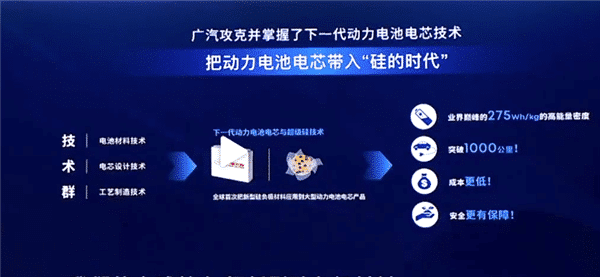 Chinese automobile maker GAC Group said on Tuesday it has achieved an energy density of 275 watt-hours per kilogram of square hard-shell cells using a new silicon anode material technology, enabling electric vehicles equipped with such batteries to have a range of more than 1,000 kilometers.