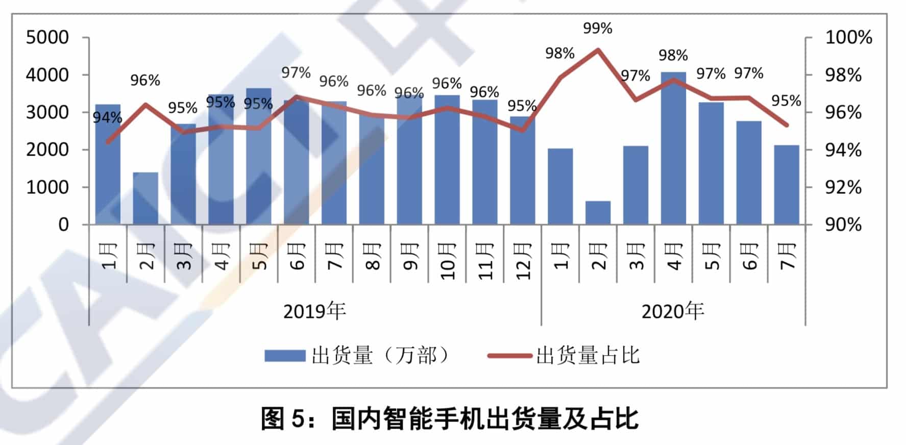 From January to July, China's overall mobile phone market shipments totaled 175 million units, down 20.4 percent year-on-year.