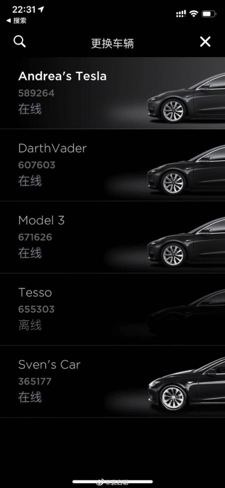 According to Weibo user @袁启聪, the Tesla owner said that when he used the iOS version of the Tesla app, he noticed that his car, which was previously successfully connected to the app, was gone and was replaced by five unfamiliar vehicles, all from Europe.