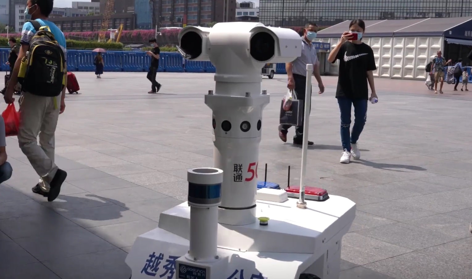 Guangzhou Railway Station has launched China's first 5G patrol robot, which can automatically measure temperature and identify passengers not wearing masks, according to Yangcheng Evening News.