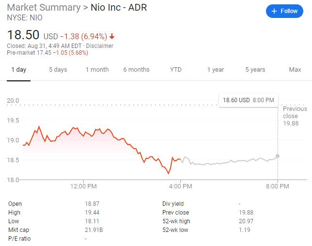 NIO shares went down by more than 5 percent in pre-market trading.