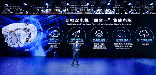 On September 26, GAC New Energy unveiled its dual-motor two speed four in one integrated drive unit for the first time at the Beijing auto show, which allows the vehicle to accelerate from 0-100km in less than two seconds.