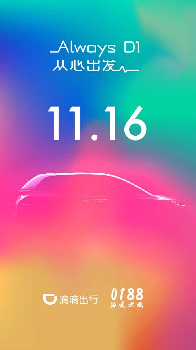 Chinese ride-sharing giant Didi will unveil a vehicle called the D1 on November 16, a poster released by the company today showed.