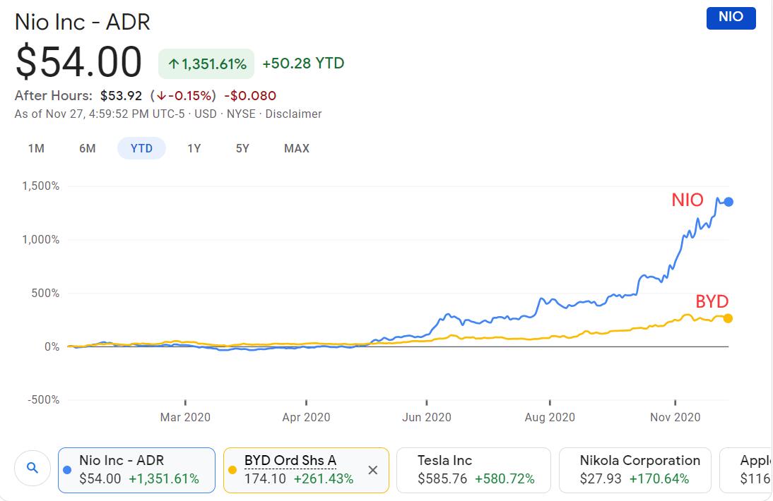 On November 27, NIO rose 0.58% to $54, bringing its year-to-date gain to 1243%. It has a market capitalization of $72.84 billion (RMB 478.84 billion), surpassing BYD's RMB 474.9 billion to become the auto company with the highest market capitalization in China.