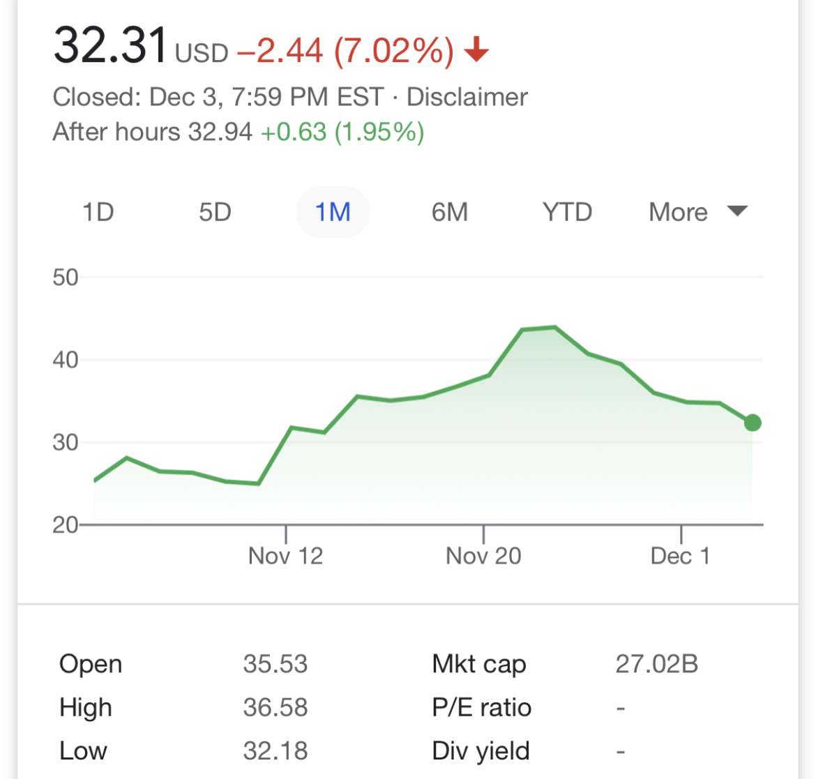 Li Auto closed down 7% to $32.31 on Thursday, and it was up 1.95% to $32.94 in the next trading session.
