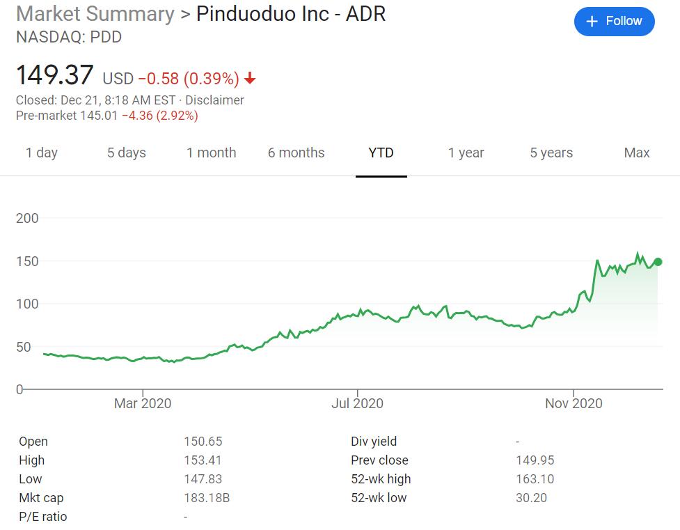 Pinduoduo shares went down by about 3 percent in pre-market trading.