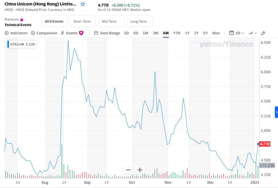 So far, China Unicom is up 6.7 percent in Hong Kong, while China Telecom is up 5.7 percent and China Mobile is up 5.4 percent.