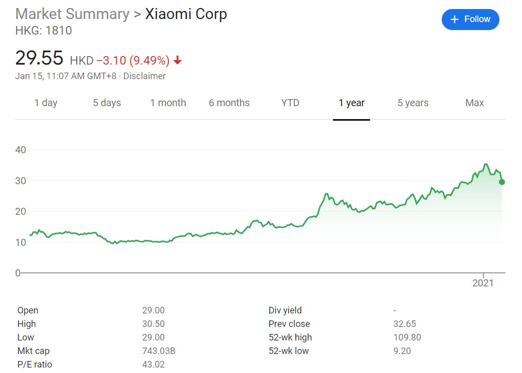 As a result, Xiaomi shares plunged as much as 10 percent in Hong Kong. Prior to this, Xiaomi had risen 174 percent in the past year.