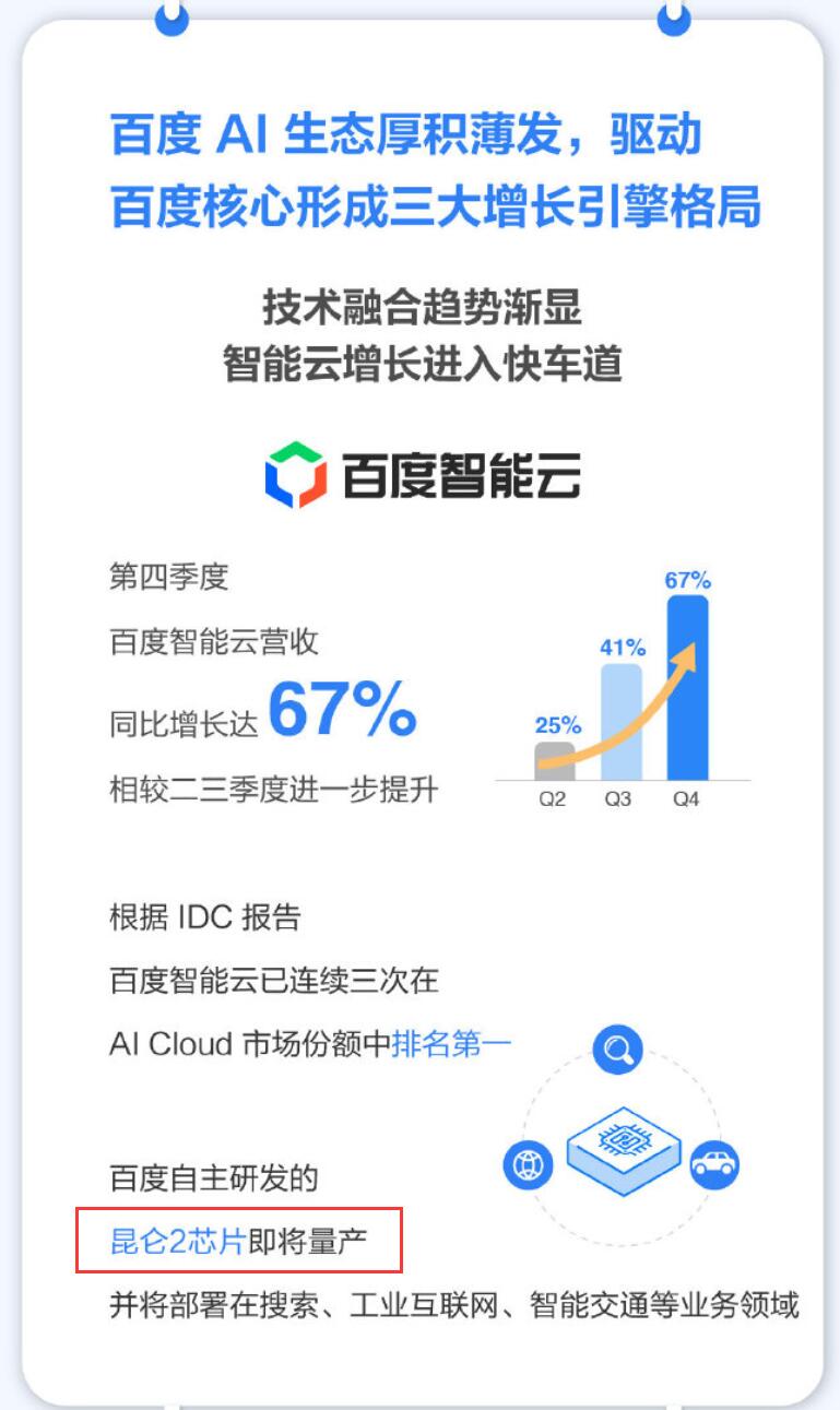 Chinese search giant Baidu said today its in-house developed 7nm AI chip Kunlun 2 is about to be mass-produced to further enhance the arithmetic advantages of its AI cloud.