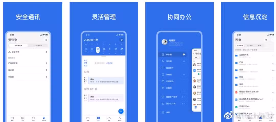 The app, called NetEase Lingxi Office, has features such as a corporate netbook, personal netbook, corporate address book, personal address book, etc. It can receive real-time new email alerts and has unlimited mailbox capacity.