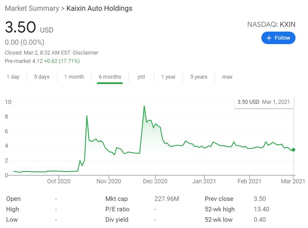 The news sent Kaixin Auto's share price soaring about 18% in pre-market trading.