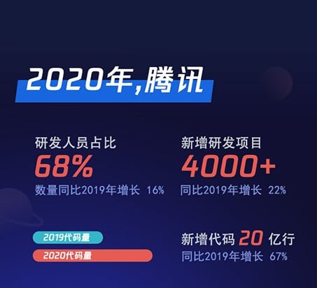 In 2020, each Tencent R&D employee had a code output of 32,000 lines on average, and 70% of technical leaders will continue to output code.