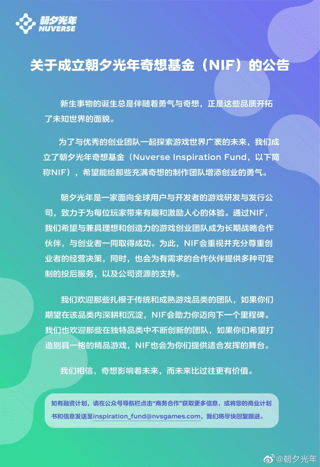 NIF wants to be a long-term strategic partner with teams that combine vision and creativity, ByteDance said.