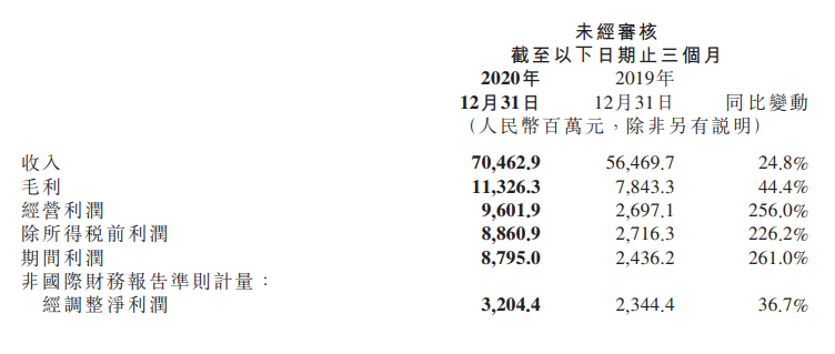 For the full year 2020, Xiaomi revenue reached 245.9 billion yuan, up 19.4% year-on-year. Adjusted net income reaches 13 billion yuan, up 12.8% year-on-year.