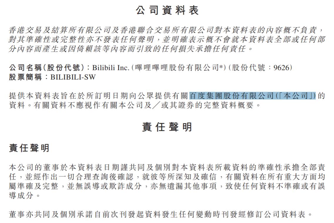 After noting the issue, Bilibili released a new document at 12:29 p.m. that corrected the error. However, the document with the previous error remains on the HKEx website.