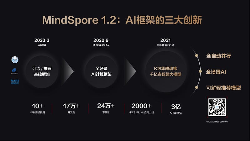 At the Huawei Developer Conference (HDC.Cloud) 2021, the company unveiled MindSpore 1.2, the first AI computing framework that supports the training of large models with 200 billion parameters in China.