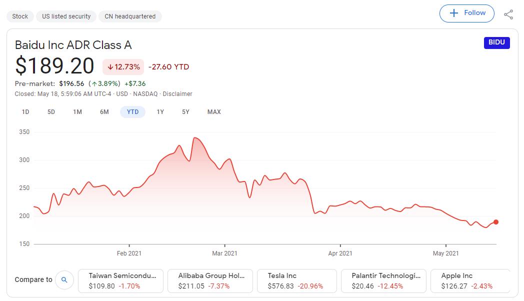Baidu shares traded in the US rose 3.89 percent to $196.56 in the pre-market trading session. So far this year, the company has accumulated a modest 13% decline amid a general sell-off in technology stocks.