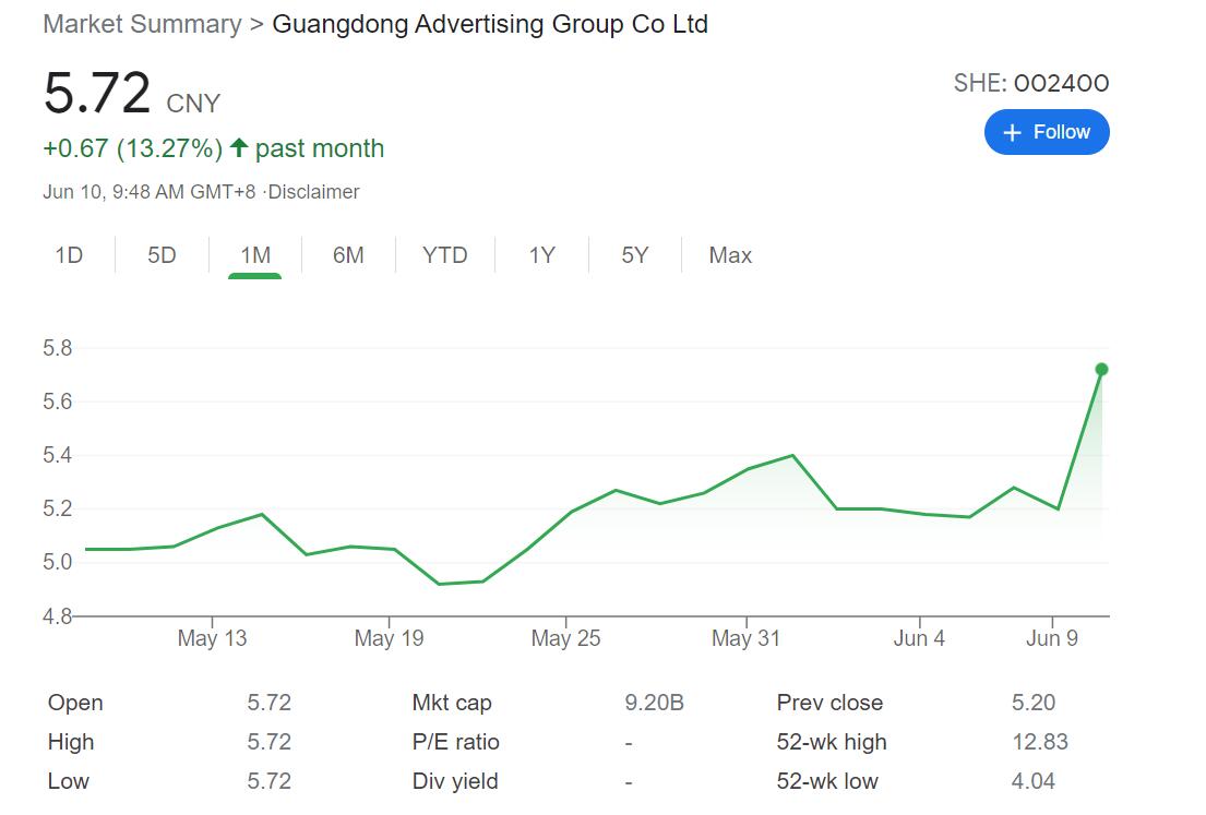 On the news, shares of TikTok owner ByteDance's partner Guangdong Advertising Group traded in Shenzhen opened up by the 10 percent trading limit.